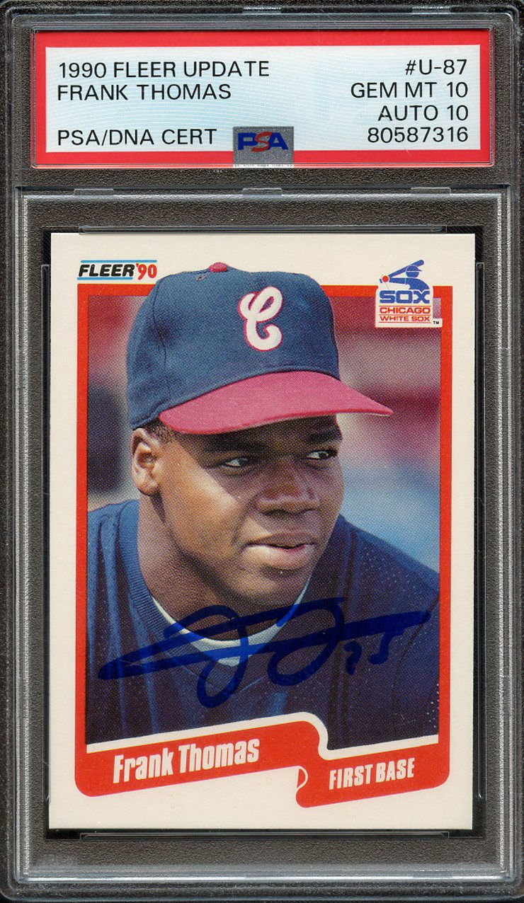 1990 Fleer U-87 Frank Thomas Signed RC PSA 10 / 10$139.99Price1990 Fleer U-87 Frank Thomas Signed Rookie Card!Gem Mint PSA 10, Signature Gem Mint PSA 10Out of Stock